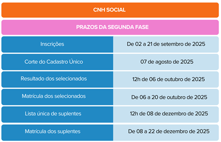 A relação final dos selecionados na segunda fase do programa CNH Social será disponibilizada a partir das 12h do dia 06 de outubro de 2025, exclusivamente no site www.detran.es.gov.br.