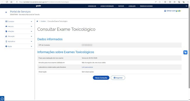 Para saber se é necessário ou não fazer o exame toxicológico basta acessar a página e seguir os seguintes passos: